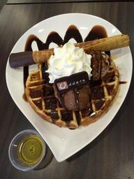 Keywords: ice cream waffles biscuit plate whipped cream chocolate