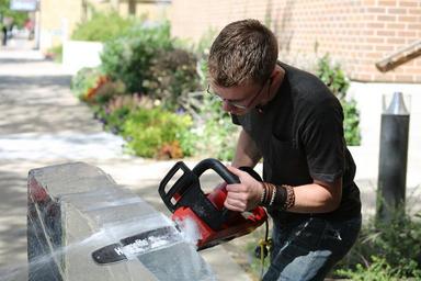 Keywords: ice sculpture man outside sawing male saw person tool adult work worker job cut equipment blade young outdoors machine human ice sculpture carving cutting shaving chisel shavings building art skill carver