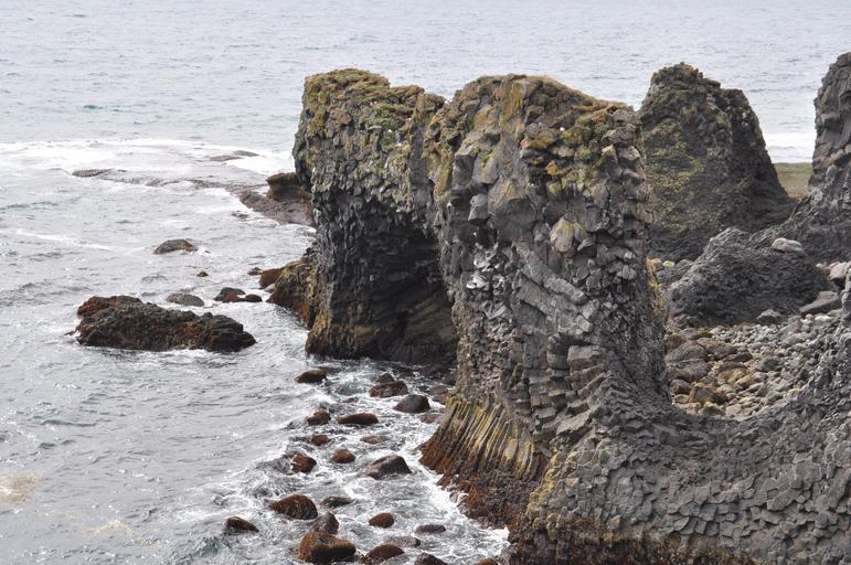 Keywords: iceland lava beach water rock black stone erosion steep wall