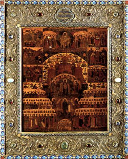 | Keywords: Icon of All Saints (Hermitage).jpg Икона Собо всех святых Оклад аботы п идво ного поставщика А Постникова осква 1893 г 41 х 33 см Се еб о д агоценные камни пе его одчатая эмаль чеканка Поступила в Э митаж в 1956 г Press photo from Hermitage the icon was stolen and then returned http //www spbvedomosti ru/print htm id 10237896 SV_Articles date anonymous PD-Art Icons of All Saints Files uploaded by Shakko from various sources Icons in Hermitage | ||||