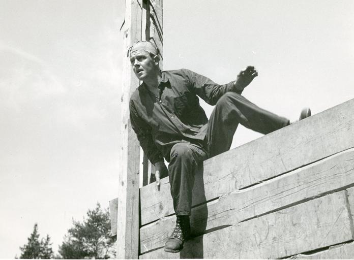 Keywords: idrett andre verdenskrig andreverdenskrig nordmenn i sverige under krigen nordmennisverigeunderkrigen 2. verdenskrig 2verdenskrig sport okkupasjonstiden outdoor Fra krigsmesterskapet i hinderløp på Gottröra 2. juli 1944. Klatring over plankehinder. RA/PA-1209/Uc/71/4/ S 5087 Fra krigsmesterskapet i hinderløp på Gottröra 2. juli 1944. Klatring over plankehinder. RA/PA-1209/Uc/71/4/ S 5087