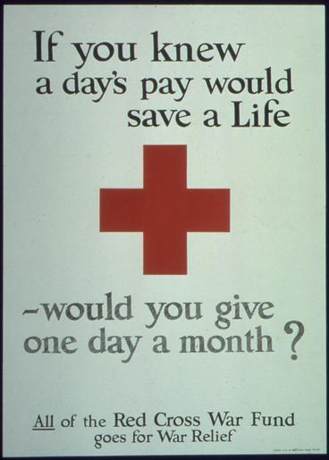 | Keywords: "If you knew a day's pay would save a life- would you give one day a month^ All of the Red Cross War Fund goes for... - NARA - 512654.tif Scope and content General notes 512654 Local identifier 4-P-216 U S Food Administration Educational Division Advertising Section 01/15/1918 - 01/1919 Still Picture Records Section Special Media Archives Services Division NWCS-S National Archives at College Park 8601 Adelphi Road College Park MD 20740-6001 other date circa 1917 1919 Record group Record Group 4 Records of the U S Food Administration 1917 - 1920 Record group ARC 333 World War I Posters compiled 1917 - 1919 Series ARC 512439 File unit File unit ARC Variant control numbers NAIL Control Number NWDNS-4-P-216 yes Other versions <gallery> File If_you_knew_a_day's_pay_would_save_a_life-_would_you_give_one_day_a_month _All_of_the_Red_Cross_War_Fund_goes_for _-_NARA_-_512654 tif tif File If_you_knew_a_day's_pay_would_save_a_life-_would_you_give_one_day_a_month _All_of_the_Red_Cross_War_Fund_goes_for _-_NARA_-_512654 jpg jpg </gallery> NARA-cooperation PD-USGov World War I posters of the United States World War I homefront in the United States International Red Cross and Red Crescent Movement War relief NARA TIF images with categorized JPGs |
