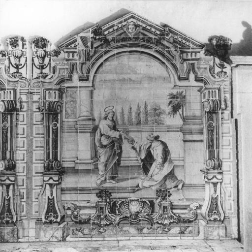 | Keywords: portuguesa brasil joão simões fundação calouste gulbenkian fundaçãocaloustegulbenkian fundação gulbenkian biblioteca arte church majolica tile figurative christ keys st. peter stpeter portugese brazil salvador da baía salvadordabaía baía azulejo joão miguel dos santos simões joãomigueldossantossimões biblioteca de arte bibliotecadearte azulejaria portuguesa azulejariaportuguesa azulejaria Capela-mor. Cristo dando as chaves a São Pedro. Azulejos do século XVIII. Fotógrafo: João Miguel dos Santos Simões (1907-1972). Data de produção da fotografia original: 1960-1970. [CFT009.3109] Capela-mor. Cristo dando as chaves a São Pedro. Azulejos do século XVIII. Fotógrafo: João Miguel dos Santos Simões (1907-1972). Data de produção da fotografia original: 1960-1970. [CFT009.3109] |