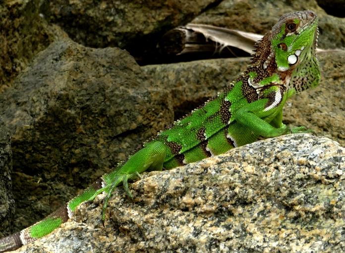 Keywords: iguana caribbean green lizard reptile animal creature green iguana nature scaly claw close dragon rock