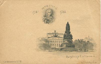 | Keywords: Портрет Петра III и вид на памятник Екатерине II.jpg По т ет импе ато а Пет а III 1728-1762 и вид на памятник импе ат ице Екате ине II в Пете бу ге http //www podstanitskiy ru/productInfo aspx cid 0 id 166 начало ХХ века Creator Mikhail Rundaltsov PD-old-auto 1935 Peter III of Russia Monument to Catherine II of Russia Saint Petersburg Paintings of Saint Petersburg Art works uploaded by Andrew Butko from various sources 1000-1999 px on long side Paintings not categorised by year Mikhail Rundaltsov Podstanitsky's collection |