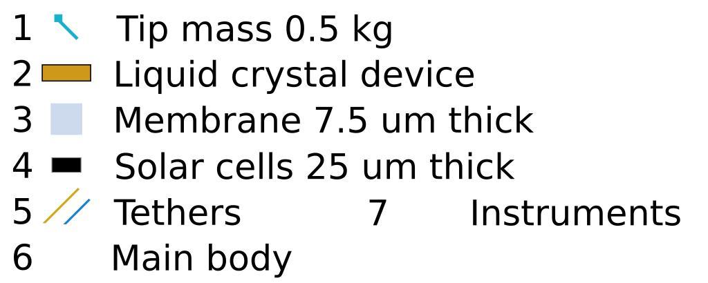 | Keywords: Ikaros solar sail key plain minusthosefivepaths.svg Ikaros solar sail when unfurled facing the sun Expanded key 1 blue square on a line Tip mass 0 5 kg 1 of 4 2 orange rectangle Liquid crystal device 1 of 80 3 blue square Membrane 7 5 um thick 20 metres diameter 4 black rectangle Solar cells 25 um thick 1 of many 5 yellow and blue lines Tethers 6 blue disc Main body 7 yellow dots Instruments Any rendering problems are probably due to wikimedia software See key with alternative font in File Ikaros solar sail key liberation sans svg; the Opera browser renders all these SVG files fine self-made by 84user after looking at references at http //www jaxa jp/press/2010/06/20100611_ikaros_e html Small Solar Power Sail Demonstrator 'IKAROS' Successful Solar Sail Deployment and JAXA's YouTube video http //www youtube com/watch v 7_6HOqBkP2o 2010-06-12 84user thumb left Alternative key with numbers only thumb left Alternative key with Liberation Sans font in an attempt to find a solution to rendering problems with Inkscape and wikimedia The Opera browser renders all these SVG files fine thumb 250px left Alternative key with Liberation Sans font and saved as plain SVG in an attempt to find a solution to rendering problems with Inkscape and wikimedia The Opera browser renders all these SVG files fine thumb left Sun-facing IKAROS diagram without key thumb 250px left Numbered key to sun-facing IKAROS diagram with DejaVu Sans font; any rendering problems are probably due to wikimedia software The Opera browser renders all these SVG files fine thumb left Sun-facing IKAROS diagram with numbers-only key at bottom thumb 250px left Sun-facing IKAROS diagram plus numbered key with DejaVu Sans font; any rendering problems are probably due to wikimedia software The Opera browser renders all these SVG files fine - 250px <-- Test upload of File Ikaros solar sail key svg saved as Plain SVG - 250px <-- Test upload of File Ikaros solar sail key svg saved as Plain SVG and then manually edited to determine whether bugzilla 17845 is related to this problem - 250px <-- Test upload of File Ikaros solar sail key svg saved as Plain SVG and then manually edited some more to determine whether bugzilla 17845 is related to this problem - 250px <-- Test upload of File Ikaros solar sail key svg saved as Plain SVG and then manually edited to add font style to those five path elements - Ok that seems to be a dead-end - validSVG http //validator w3 org/check uri Created with Inkscape Diagram legends Legend in English IKAROS Illustrations of spacecraft SVG spaceflight |