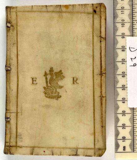 Keywords: Il Targa - Upper cover (Davis29).jpg Style Trade binding Lettered cover eg intitals titles; Caption Upper cover; Colour White / cream; Edge Unspecified exhibition history Decorative Technique Tooled in gold; Cover Material Parchment The crowned falcon and ER does not indicate that this was the property of Queen Elizabeth I Vellum flap extends over fore edge object history Text 1575; Venice; Unspecified object type Cc-zero place of creation Binding England place of discovery See M M Foot The Henry Davis Gift vol II London 1983 British Library image http //www bl uk/catalogues/bookbindings/LargeImage aspx RecordId 020-000003178 ImageId ImageId 41194 Copyright BL Il Targa Uploaded with GWToolset Il Targa - Upper cover Davis29 http //www webarchive org uk/bldatasets/bindings/5692_4 jpg Bookbinding 16th-century bookbinding British Library Bookbindings |
