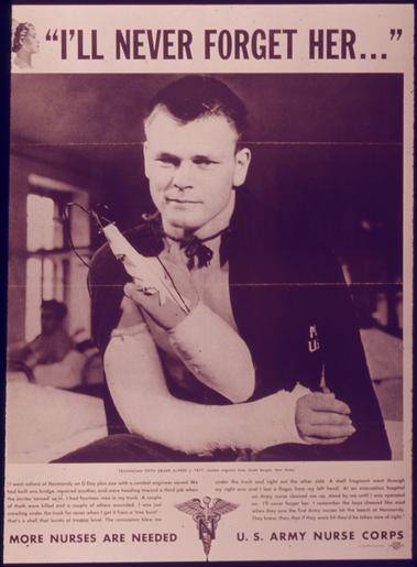 | Keywords: "I'll Never Forget Her . . ." - NARA - 514600.tif Scope and content General notes 514600 Local identifier 44-PA-1073 Office for Emergency Management Office of War Information Domestic Operations Branch Bureau of Special Services 03/09/1943 - 09/15/1945 Still Picture Records Section Special Media Archives Services Division NWCS-S National Archives at College Park 8601 Adelphi Road College Park MD 20740-6001 1941 - 1945 Record group Record Group 44 Records of the Office of Government Reports 1932 - 1947 Record group ARC 373 World War II Posters compiled 1942 - 1945 Series ARC 513498 File unit File unit ARC Variant control numbers NAIL Control Number NWDNS-44-PA-1073 yes Other versions <gallery> File I'll_Never_Forget_Her_ _ _ _-_NARA_-_514600 tif tif File I'll_Never_Forget_Her_ _ _ _-_NARA_-_514600 jpg jpg </gallery> NARA-cooperation PD-USGov World War II recruitment posters from the United States NARA TIF images with categorized JPGs Wounded soldiers Soldiers in World War II propaganda of the United States Army Nurse Corps United States |