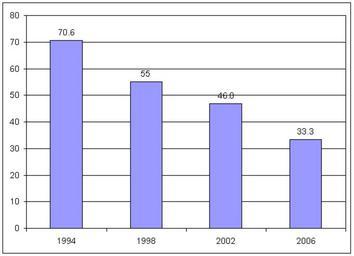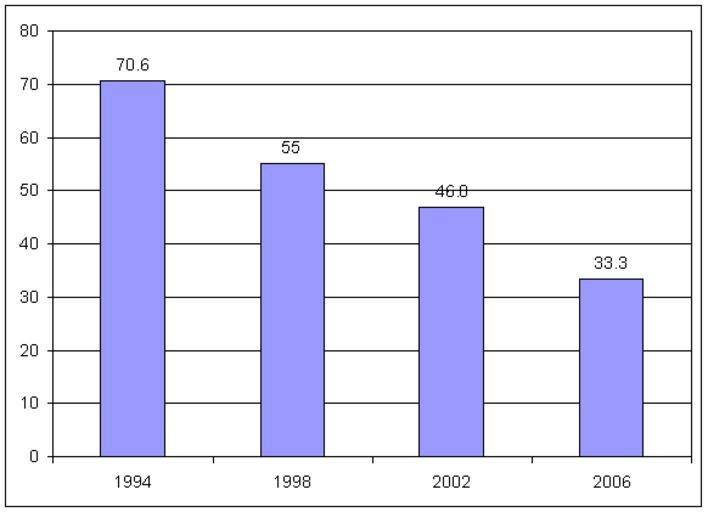 Keywords: Illarionov FreedomIndex.PNG Freedom House Index of Russia as percentage to the average OECD data en Andrey Illarionov own 2007-05-08 Alex Bakharev based on slide 10 from http //www iea ru/article/siloviki_model/12_04_07_1 ppt Illarionov presentations Freedom House