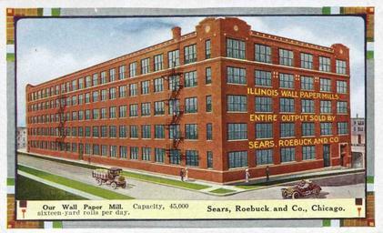 Keywords: Illinois Wall Paper Mills postcard ca1916.png postcard depicting wall paper mill USA eBay / picken4u 1916 Author unknown PD-Old Wallpaper manufacturing companies Industrial heritage in Illinois