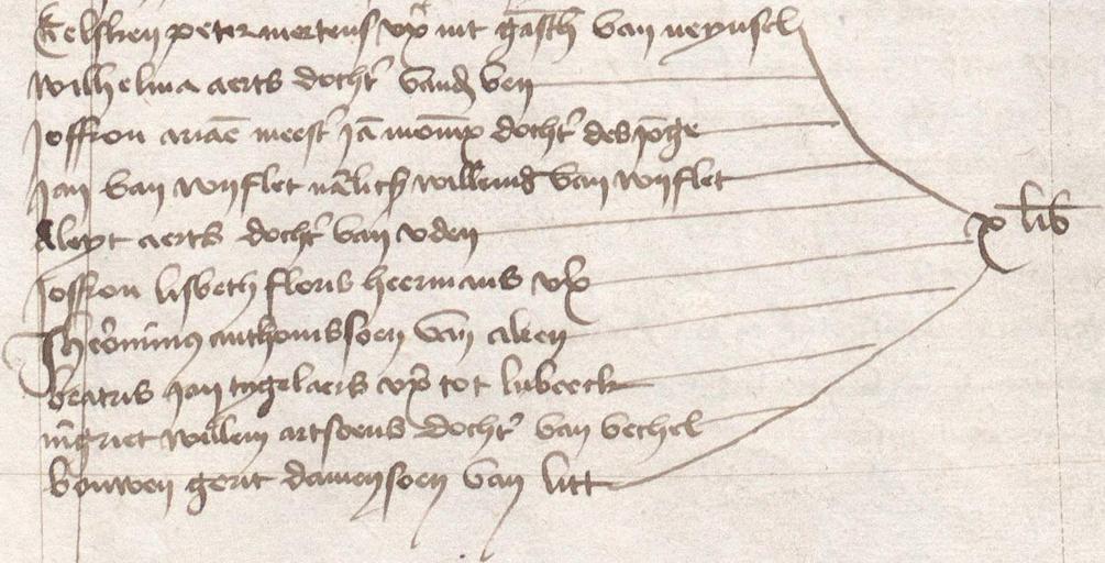 | Keywords: ILVB register 1485-1495 fol 42v line 26-35 colour version.jpg Hieronymus Bosch Lijst van nieuwe leden van de Illustre Lieve Vrouwe Broederschap te 's-Hertogenbosch waaronder de schilder Jheronimus Bosch Brabants Historisch Informatie Centrum Archief van de Illustre Lieve Vrouwe Broederschap Rekeningboek 1485-1495 inv 122 fol 42v www bhic nl http //www bhic nl Home http //www bhic nl/index php id 11886 Info http //beeldbank bhic nl/index2 php Itemid 9 option com_genealogie task register_bron id 44208 entiteit register persoon_id cp 83 pp 82 Pic Anonymous 1486-1487 ILVB register 1485-1495 fol 42v line 26-35 jpg Black and white version PD-old-100 History of 's-Hertogenbosch Hieronymus Bosch Archive1486 Brabants Historisch Informatie Centrum |