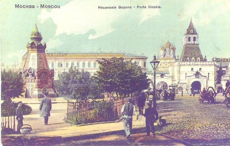 Keywords: Ilyinsky vorota2.jpg Ильинские во ота и памятник ге оям Плевны Ilyinsky Gate and Plevna Memorial http //turizm lib ru/n/nowak_a_w/varvarka shtml с 1900 Author PD-RusEmpire Ilyinsky Gate Historical images of streets and squares of Moscow Ilyinsky Vorota Square Plevna Chapel-Monument PD-Old