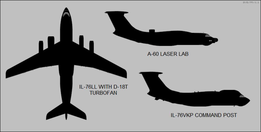Keywords: Ilyushin Il-76LL, Il-76VLP (Il-82), Ilyushin-Beriev A-60 silhouettes.png 2-view silhouettes of Ilyushin -Beriev Il-76 variants http //www vectorsite net/Avil76_06 png 2011-01-18 Greg Goebel VectorSite images marked GVG/PD are In The Public Domain Greg Goebel Silhouette drawings of aircraft Beriev A-60 Ilyushin Il-82 Ilyushin Il-76LL Images by Greg Goebel |