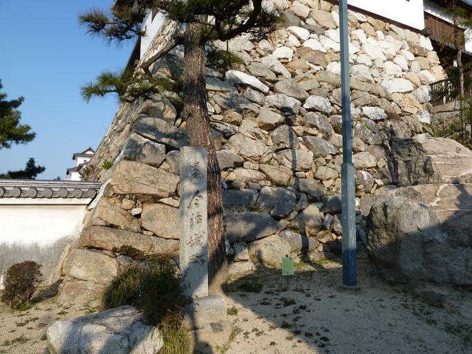 Keywords: Imabari castle sekihi.JPG en 今治城内にある石碑と石垣 自身で撮影 ぺ 家音 2011年3 27日 34 3 48 99 N 133 0 20 37 E source exif_heading Cc-zero Imabari Castle
