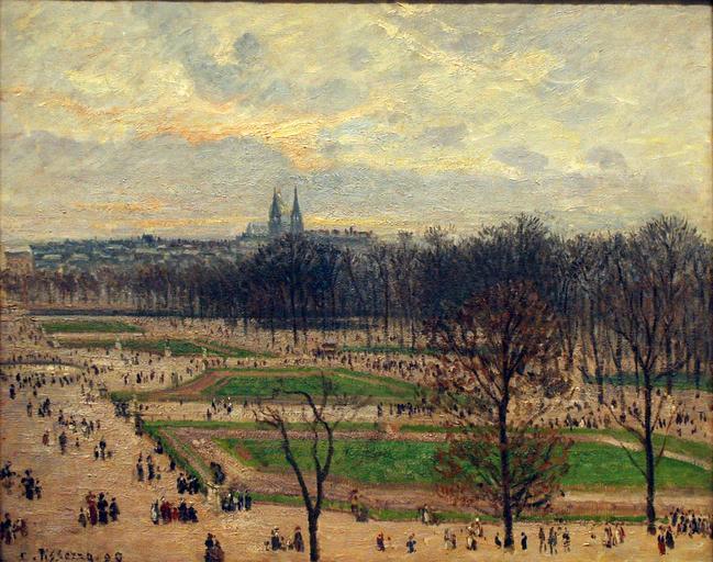 | Keywords: Image-The Garden of the Tuileries on a Winter Afternoon - 2.JPG Camille Pissarro The Garden of the Tuileries on a Winter Afternoon 1899 jpg Artwork creator Camille Pissarro hu Pissarro festménye a New York-i Metropolitan Múzeumban 1899 oil on canvas cm 73 3 92 4 Institution Metropolitan Museum of Art Gallery 820 credit line ProvenanceEvent 1966 gift Katrin S Vietor in loving memory of Ernest G Vietor Signed and dated lower left C Pissarro 99 accession number 66 36 110001762 PD-old-100 DEFAULTSORT Pissarro Garden of the Tuileries on a Winter Afternoon The Garden of the Tuileries on a Winter Afternoon by Camille Pissarro Paintings by Camille Pissarro in the Metropolitan Museum of Art Images of Paris from the Metropolitan Museum of Art |