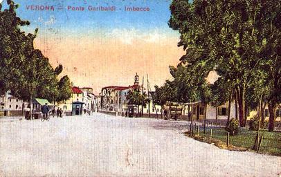| Keywords: Imbocco Ponte Garibaldi VR Cartolina.jpg en Ponte Garibaldi in Verona Italy in a vintage postcard it Cartolina d'epoca di Verona raffigurante l'imbocco di Ponte Garibaldi da Borgo Trento Postcard author 1890 Postcards of Verona 1890 postcards of Italy PD-old |