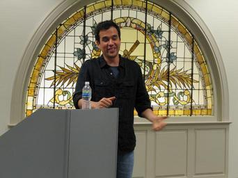 Keywords: Baritone Thomas Meglioranza demonstrated, through singing and musical examples, how text and poetry affect musical interpretation in a lecture and performance at Kalamazoo Public Library, July 14, 2009. Meglioranza appeared at the library courtesy Fontana Chamber Arts. <a href="http://www.kpl.gov" rel="nofollow">www.kpl.gov</a> music library classical kalamazoo vocal