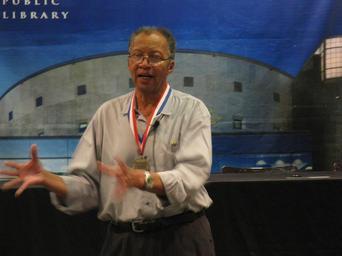 MAKE A MEME View Large Image Author Walter Dean Myers, Library of Congress National Ambassador for Young People's Literature, at Kalamazoo Public Library with KPL and KPS staff and administrators, August 7, 2013. www.kpl.gov photo by Keith Howard Author Walter Dean ...
