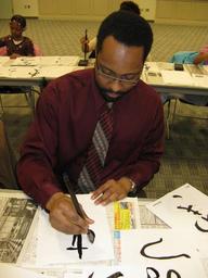 Keywords: kalamazoo library reading together community art craft shodo japan culture indoor On March 16, 2010, Michiko Yoshimoto, Japan Outreach Coordinator at the Soga Japan Center of Western Michigan University, and a member of the Reading Together Steering Committee, explained the basics of shodo, the way of writing the Japanese language. www.readingtogether.us On March 16, 2010, Michiko Yoshimoto, Japan Outreach Coordinator at the Soga Japan Center of Western Michigan University, and a member of the Reading Together Steering Committee, explained the basics of shodo, the way of writing the Japanese language. www.readingtogether.us