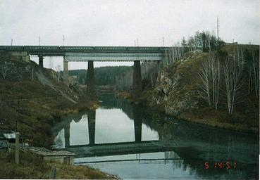 Keywords: Железнодорожный мост К-Уральский.jpg Железнодо ожный мост че ез Каменку в че те Камменска-У альского По этому мосту п оходит большинство поездов следующих из осквы и Пете бу га в Омск Ба наул Алма-Ату Бишкек Spoorbrug over de Kamenkarivier in de stad Kamensk-Oeralski Over deze brug loopt een van de spoorlijnen tussen Europees-Rusland Moskou/Sint-Petersburg en Centraal-Azië en Siberië Omsk Barnaoel Alma-Ata en Bisjkek own by author transferred from Russian wikipedia 2005-11-05 ru User Человек- евидимка by author Kamensk-Uralsky |