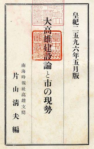 | Keywords: 大高雄建設論と市の現勢.jpg ja 大高雄建設論と市の現勢 zh-tw 大高雄建設論與市的現勢 http //farm4 static flickr com/3037/2928160433_0d7f350fa5 jpg 片山清夫 editor ; 南海時報社高雄支 publisher 1936 PD-Japan History of Kaohsiung Books from Taiwan Books from Japan Books with ex-libris stamps |