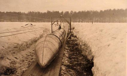| Keywords: Общий вид шаропоезда конструкции Н. Ярмольчука. 1932 г..jpg ru Общий вид ша опоезда конст укции Я мольчука 1932 г <blockquote> инжене иколай Я мольчук п идумал двухколёсные вагоны но п облему устойчивости ешил иным об азом Каждое колесо его поезда п едставляло собой гигантский ша высотой с человеческий ост Боковушки ша ов с езаны здесь п оходят оси и установлены элект одвигатели Два таких ша а одетые в езину зак еплены в голове и хвосте цилинд ического вагона Ша ы выступают на ужу че ез п о ези в днище Путь для ша опоезда иколай Г иго ьевич задумал в виде бетонного лотка полук углой фо мы поднятого на опо ах над землёй Обтекаемый ша опоезд должен был азвивать ско ость более 300 км/ч Я мольчук п едусмот ел в нём к оме т адиционных воздушные то моза выдвигающиеся щитки В 1929 году иколай Г иго ьевич пост оил к ошечную модель ша опоезда Её действие п оизвело неизгладимое впечатление на начальство в оскве о ганизовали целое КБ для п оекти ования полно азме ного об азца В 1933 году Я мольчук вместе с новыми коллегами пост оил ещё одну действующую модель аз в пять меньше но мального состава Внут и этих вагонов уже помещалась па а человек п авда лёжа Де евянный отполи ованный жёлоб п ичудливой змеёй извивался с еди подмосковных бе ёзок Один из испытателей вспоминал Когда я влез в узкий вагончик меня мучили сомнения не казалось что поезд на быст ом ходу должен соскочить с лотка обязательно пе еве нуться ичего такого не случилось ягко чуть покачиваясь без п ивычного железного пе естука колёс поезд глотал п ост анство а к ивых он автоматически наклонялся сох аняя авновесие подобно велосипеду Я мольчук купался в лучах славы ежду осквой и огинском взялись было ст оить пе вую лотковую до огу но тут аздались возгласы А сколько это будет стоить И обычные железные до оги ещё не показали всех своих возможностей О затее быст о забыли В дальнейшем Я мольчук аботал инжене ом но ст оить столь необычные конст укции уже не по ывался Заложенные в ша опоезд идеи го аздо позже нашли воплощение в самых азных конст укциях Поднятые на столбах пути и обтекаемые будто самолёты поезда обе нулись моно ельсовыми до огами только несколько иной конст укции чем у Я мольчука Воздушные то моза сейчас можно вст етить на самолётах А обтянутые езиной стальные колёса на поездах во многих мет ополитенах ми а Сам же ша опоезд остался мечтой </blockquote> Алфавит янва ь 2 http //www rusarchives ru/evants/exhibitions/ntd-kat/13 shtml author 1932 PD-Ukraine 1930s Unusual vehicles Monorails in Russia |