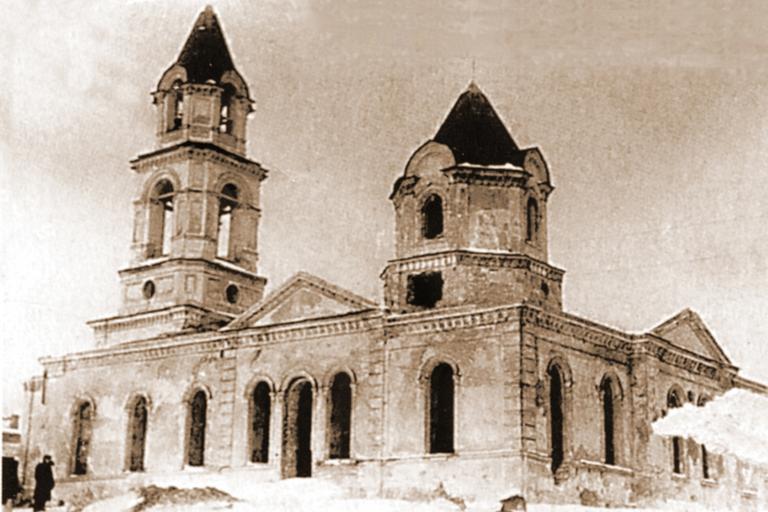 Keywords: Георгиевская церковь.jpg en St George church in Orel after liberating city in 1943 ru Гео гиевская це ковь после освобождения О ла Orel archive author 1943 PD-Ukraine 1940s Saint George Church Oryol