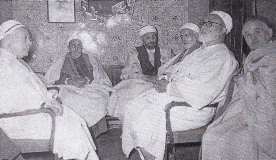 | Keywords: مجلس يضم ثلة من مشائخ جامع الزيتونة.jpg ar مجلس يضم ثلة من مشائخ جامع الزيتونة من اليسار الى اليمين الشيخ سيدي محمود القرجي مدرس طبقة اولى بالتعليم الزيتوني، الشيخ سيدي الطيب سيالة القاضي المالكي عضو في هيأة المشيخة الزيتونية، الشيخ سيدي محمد صالح بن مراد شيخ الاسلام الحنفي ، الشيخ سيدي ناجي بن مراد القاضي الحنفي ، الشيخ سيدي علي بالخوجة المفتي الحنفي اخذت الصورة سنة 1950 1950 facebook author other versions Custom license marker 2015 12 11 PD-Tunisia Religious personalities from Tunisia |