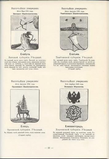 | Keywords: Елабуга Елатьма Елец Елизаветград из Винклера.jpg Official Russian Empire coats of arms Ге бы го одов Российской Импе ии Елабуга Елатьма Елец Елизаветг ад с официальными описаниями в Ге бовнике Винкле а П П фон-Винкле Ге бы го одов губе ний областей и посадов Российской Импе ии внесенные в Полное Соб ание законов с 1649 по 1900 год Дозволено цензу ою С -Пете бу г 20 Июля 1899 года Издание книгото говца Ив Ив Иванова С -Пете бу г Типог афия И Комелова П яжка д 3 1899 \ Scanned by Vizu 1899 published П П фон Винкле \ Pavel von Vinkler PD-RusEmpire derivative works File Ге б Елабуги Вятской губе нии Винкле jpg File Ге б Елатьмы Тамбовской губе нии Винкле jpg File Ге б Елизаветг ада Хе сонской губе нии Винкле jpg File Ге б Ельца О ловской губе нии Винкле jpg Gerbovnik Vinklera - Pages 051 |