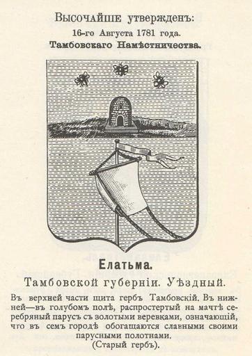 | Keywords: Герб Елатьмы Тамбовской губернии (Винклер).jpg ru Ге б Елатьмы с официальным описанием в Ге бовнике Винкле а 1781-08-16 O S adopted 1899 published File Елабуга Елатьма Елец Елизаветг ад из Винкле а jpg П П фон Винкле PD-RusEmpire Uploaded with UploadWizard Coats of arms of Tambov Governorate Gerbovnik Vinklera - City CoAs Елатьма |