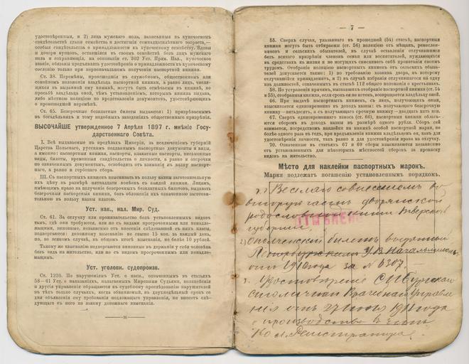 Keywords: Паспорт Веселаго Василия Сергеевича, с. 7.jpg ru Паспо т Веселаго Василия Се геевича с 7 Рукописный текст на с 7 является п одолжением текста со с 3 «Свидѣтельство Тве скаго Дво янскаго Депутатскаго Соб анiя отъ 31 мая 1894 года за 221 о п ечисленiи къ дво янскому оду см ст 7 » « г г Веселаго совнесенiемъ во вто ую часть дво янской одословной книги Тве ской губе нiи 2 Ополченскiй билетъ выданный Пете бу гскимъ У В ачальникомъ отъ 1910 года за 6307 3 Удостове енiе СПбу гскаго Столичнаго В ачебнаго Уп авленiя отъ 27 Iюня 1911 года о п оизводстве въ чинъ Кол Регист ато а » Коллежский асессо ошибся а самом деле ополченский билет 6307 выдан в 1901 году не Пете бу гским а Пете гофским уездным воинским начальником подполковником Янушевским Александ ом Ивановичем 1901 <small><sub>chelo</sub></small>Vechek / <small><sup>talk</sup></small> с о игинала из собственного а хива <small><sub>chelo</sub></small>Vechek / <small><sup>talk</sup></small> from original in own archive <small><sub>chelo</sub></small>Vechek / <small><sup>talk</sup></small> de l'original en propre archive ru е указывается en Not credited PD-RusEmpire Uploaded with UploadWizard Vasily Veselago Documents of the Russian Empire Identity documents 1907 documents |
