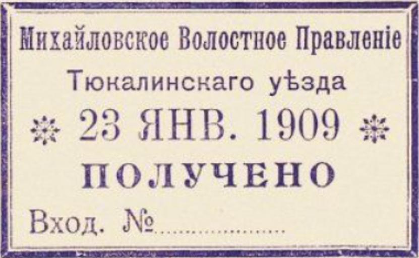 | View Original: | Печать Михайловского волостного правления Тюкалинского уезда.PNG (380x234) | |||