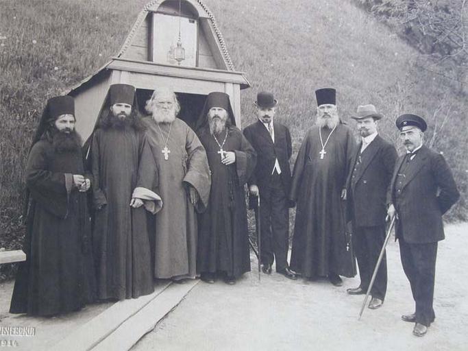 | View Original: | Игумен Валентин, о. Никанор, князь В. Д. Жевахов, горные инженеры С. Г. Коклик, П. Э. Бутенко и скитские монахи, 1914 г.jpg (700x525) | |||