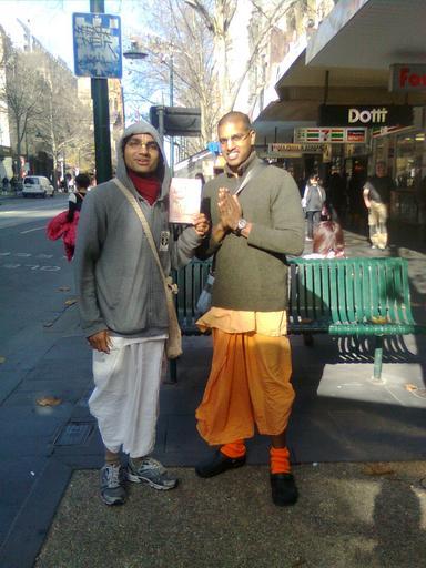 Keywords: इस्कॉन स्वयंसेवक.jpg mr इस्कॉनचे मेलबर्न येथ ल स्वयंसेवक own Katyare इस्कॉनचे मेलबर्न येथ ल स्वयंसेवक य आणि हरेनामानंद क्रॉसवे या इस्कॉन संचलित उपहारगृहा वळ काढलेले चित्र Cc-zero Volunteers Hare Krishna Swanston Street Melbourne