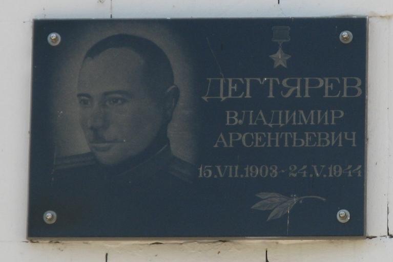 | Keywords: Дегтярёв Владимир Арсентьевич.jpg  en Memorial plaque Hero of the Soviet Union Дегтя ёв Владими А сентьевич The peace established in the village  и ный Ukraine ru Памятная доска Ге ою Советского Союза Дегтя ёву Владими у А сентьевичу установленная в пгт  и ный Ук аина own  ихаил Фетисов 2011-08-23 Cc-zero 20th-century military people of Russia Aviators from Russia |