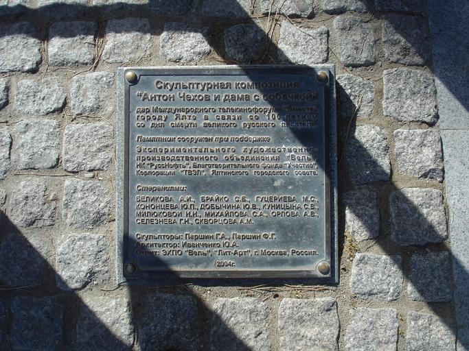 | Keywords: Ялта-Чехов и Дама-Плита.jpg  ru Памятник А П Чехову и его Даме с собачкой инфо мационная плита 2012-05-10 17 24 03 http //ru wikipedia org/wiki/Файл Ялта-Чехов_и_Дама-Плита jpg http //ru wikipedia org/wiki/Участник GennadyL cc-zero Uploaded with UploadWizard Plaques in Yalta |