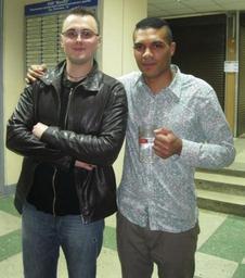 Keywords: З Такіндангам.jpg be Анд усь Такінданг са сваім фанатам на канцэ це гу та Рэха ў клубе Г афіці 6 лістапада 2013 г en Andrus Takindanh with his fan at RECHA's concert in Minsk 06 11 2013 З майго фотаапа ату Іга Ба ысавіч Ця эшчанка 6 лістапада 2013 г Artists from Belarus Cc-zero