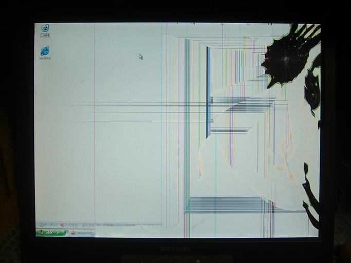 Keywords: 破損した液晶画面.JPG 液晶画 が破損した状況の画像 2006-12-20 own assumed Toby~commonswiki LCD computer monitors Damaged computer hardware