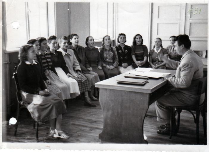| Keywords: Златко Коцев - първите хористки на ансамбъл Пирин в Петрич 1954 г..jpg bg Златко Коцев - музикант композито ди игент живял от 1921 г до 1991 г Създател и пъ ви художествен ъководител на ансамбъл Пи ин Пъ вите епетиции на ансамбъла са в г Пет ич а снимката - пъ вите хо истки на ансамбъла по в еме на епетиция 1954 г Личен а хив на моя баща еизвестен авто 1954 Cc-zero | ||||