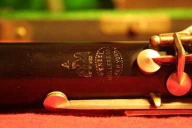 Keywords: penzal müller mueller clarinet a wood vintage A longer exposure of the emblem. The instrument is lacking a model name, such as Artist, which has been suggested to mean that is in fact from some time in the 20's. I think it's a bit later, early 30's, only because the serial number is 5 digits long, rather than 4. Dating these instruments is however, hard since no one has positive evidence of what serial numbers were made when. and usually only guesses about the decade of manufacture, or era can be guessed. I did see a horn with a slightly later serial, 18XXX, with the model name artist above an emblem identical to this one.. Perhaps only a few years apart. The question still remains, what years? A longer exposure of the emblem. The instrument is lacking a model name, such as Artist, which has been suggested to mean that is in fact from some time in the 20's. I think it's a bit later, early 30's, only because the serial number is 5 digits long, rather than 4. Dating these instruments is however, hard since no one has positive evidence of what serial numbers were made when. and usually only guesses about the decade of manufacture, or era can be guessed. I did see a horn with a slightly later serial, 18XXX, with the model name artist above an emblem identical to this one.. Perhaps only a few years apart. The question still remains, what years? |