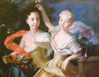 Keywords: Каравакк - Портрет царевен Анны Петровны и Елизаветы Петровны.jpg Artwork Creator Louis Caravaque Portrait of the daughters of Peter I the Great Anna Petrovna on the left and Elizaveta Petrovna on the right 1717 Холст масло 76 х 97 Russian Museum Saint Michael's castle object history Поступила 1931 из ГЭ; анее - Романовская гале ея Зимнего дво ца exhibition history credit line Сп ава внизу подпись Lud Carav а обо оте че ной к аской 5351 а под амнике Г Э 1278; штамп Г Р инв 5589 номе заче кнут Упоминается в Записках Якоба Штелина П и нем Пет е I - Авт Ка авак < > написал импе ато ских п инцесс Анну и Елизавету в юности Штелин 1990 с 45 accession number Ж-4904 place of creation own George Shuklin photo 08 03 2008 <gallery>Anna Petrovna and Elizaveta Petrovna jpg</gallery> PD-old-100 DEFAULTSORT 1717; Petrovna Louis Caravaque Portrait paintings in the St Michael's Castle 18th-century portraits in the Russian Museum Romanovs Anna Petrovna of Russia Portraits of Elizabeth of Russia as a child 1710s paintings in Russia 1717 portrait paintings 18th-century family portraits of royalty 18th-century portrait paintings in Russia 18th-century portrait paintings of girls at half length Portrait paintings of girls from Russia Family portraits of Russian rulers Portrait paintings of females with flowers Portraits of sisters Portraits with 2 persons Romanov Gallery