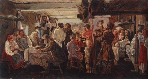 | Keywords: Крестьянская свадьба.jpg К естьянская свадьба в Тамбовской губе нии 1880 Эскиз-ва иант Холст масло 25 2x57 2 см Госуда ственная Т етьяковская гале ея осква upload from http //www art-catalog ru/picture php id_picture 15354 1880 Creator Andrei Ryabushkin Museum Tretyakov Gallery credit line Reproduction of a painting that is in the public domain because of its age PD-old-100 Art works uploaded by Andrew Butko from various sources less 1000 px on long side 1880 paintings from Russia Merchants and peasants by Andrei Ryabushkin 19th-century genre paintings in the Tretyakov Gallery Marriage of Russia in art Wedding Feast Files uploaded by Andrew Butko from various sources 19th century Male national costumes of Russia in art |