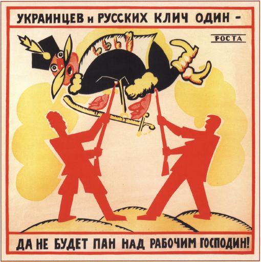 Keywords: Украинцев и русских клич один.jpg РОСТА «Ук аинцев и усских клич один да не будет пан над абочим господин » аяковский В В 1920 http //www plakaty ru/posters id 68 1920 Creator Vladimir Mayakovsky PD-old-auto 1930 Okna ROSTA created by Vladimir Mayakovsky Art works uploaded by Andrew Butko from various sources 2000-2999 px on long side Bayonets in propaganda