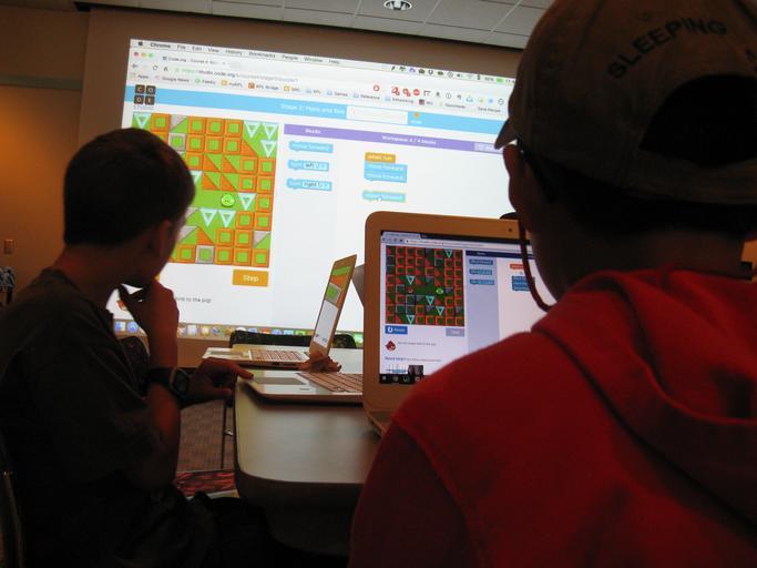 Keywords: kalamazoo kalamazoo public library kalamazoopubliclibrary code indoor KPL Code Camp: Teens work together to solve problems while learning basic computer programming skills, www.kpl.gov KPL Code Camp: Teens work together to solve problems while learning basic computer programming skills, www.kpl.gov