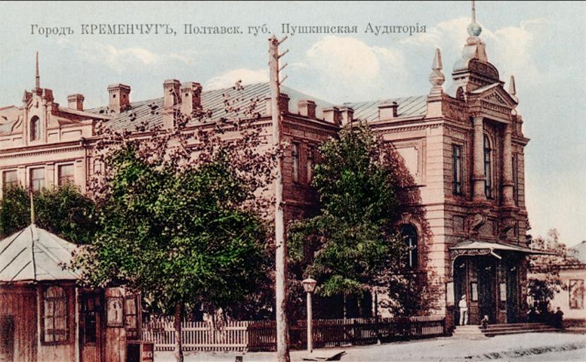 Keywords: Кременчук Пушкинська аудиторія.jpg Postcards of old Kremenchuk <br> Пушкинська на одна аудито ія Вулиця Го одова колишня Пушкинська 29 ве есня сучасний бульва Пушкіна http //www berloga net berloga net ~ 1900 оки Видавництво книжкового магазину Амчиславського і Блюма other`s Author died more than 70 years ago - public domain PD-old History of Kremenchuk |