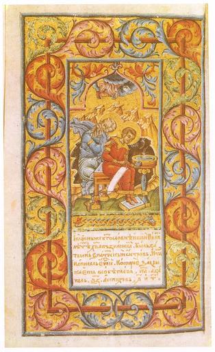 | Keywords: Мініатюра Євангеліст Іоанн з Прохором арк. 340 ПЄ.jpg  uk  ініатю а Запаско Я П Пам ятки книжкового мистецтва ук аїнська  укописна книга наукове видання Текст / Я П Запаско  Л Світ 1995  480 с іл ; 29 см Федуско із Самбо а 1556-1561 PD-old-100 Peresopnytsia Gospels Miniatures of Saint John the Evangelist Gospel of John Prochorus |