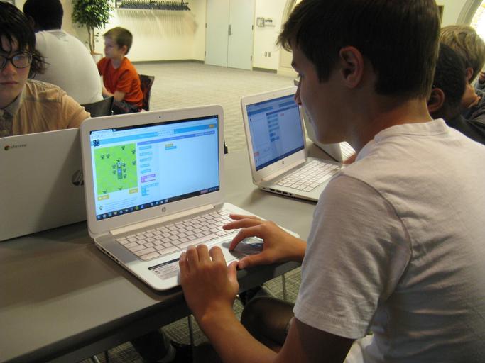 Keywords: kalamazoo kalamazoo public library kalamazoopubliclibrary code indoor KPL Code Camp: Teens work together to solve problems while learning basic computer programming skills, www.kpl.gov KPL Code Camp: Teens work together to solve problems while learning basic computer programming skills, www.kpl.gov
