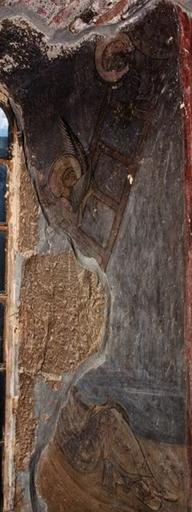 Keywords: იაკობის სიზმარი.jpg The mural in Betania Monastery Georgia The mural is called იაკ ბის სიზმარი The official disk of Betania monastery XII-XIII centuries Created by order of Queen Tamar of Georgia PD-Art Betania southern wall murals