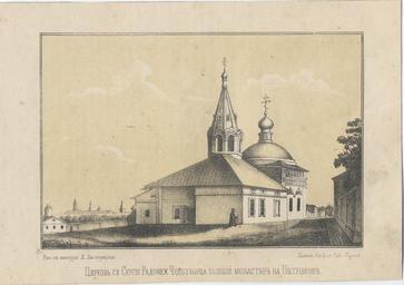 Keywords: Церковь святого Сергия Радонежского Чудотворца бывший монастырь на Петушкове.jpg en Nizhny Novgorod Saint Sergius of Radonezh Church ru ижний овго од Улица Се гиевская У ицкого Це ковь святого Се гия Радонежского Чудотво ца на месте мужского монасты я в Петушкове Это здание не сох анилось - на его месте был выст оен новый х ам в 1860-х гг по п оекту Р Я Килевейна Скани ован из книги И Х амцовского К аткий оче к исто ии и описание ижнего овго ода издание 1857-1859 гг Дмит ий Яковлевич Быст ицкий 1850-егг PD-old http //maps google ru/maps q 56 323386 43 987143 num 1 t h sll 56 328307 43 993571 sspn 0 002124 0 004823 gl ru ie UTF8 ll 56 323367 43 987552 spn 0 002124 0 004823 z 18 Це ковь стояла на этом месте Saint Sergius of Radonezh Church Nizhny Novgorod Historical images of Nizhny Novgorod Nizhny Novgorod Lithographie fon Bystritsky |