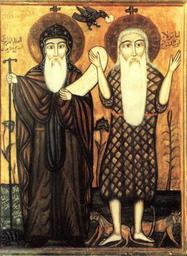 | Keywords: Встреча святого антония и павла (копты).jpeg  en Meeting of sacred Antonija and Pavel A Coptic icon ru Вст еча святого Антония и Павла Коптская икона http //www cirota ru/forum/images/87/87330 jpeg коптская це ковь до XX века PD-old Paintings of Saint Paul of Thebes Coptic icons |